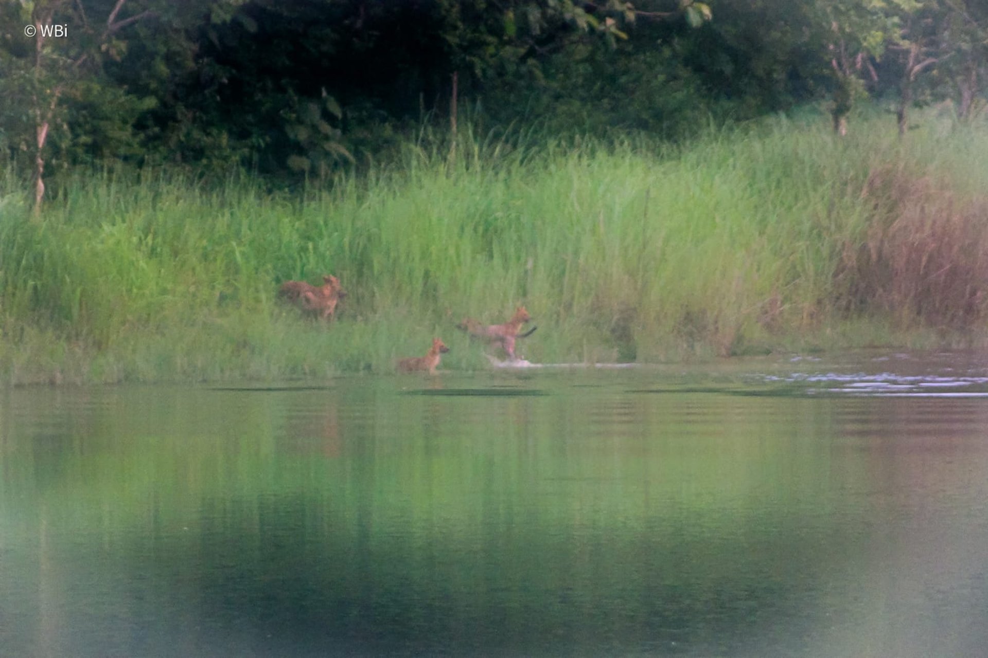 Então, apareceu um animal laranja correndo, e meu primeiro instinto foi acreditar que era um tigre. Meu coração disparou, comecei a tremer. Mas rapidamente percebi que o animal era menor. Em poucos segundos, vieram 1, 2, 3, 4, 5, 6 — seis dholes surgiram, fazendo grunhidos estridentes. Fiquei paralisado, observando: era um bando caçando um cervo.