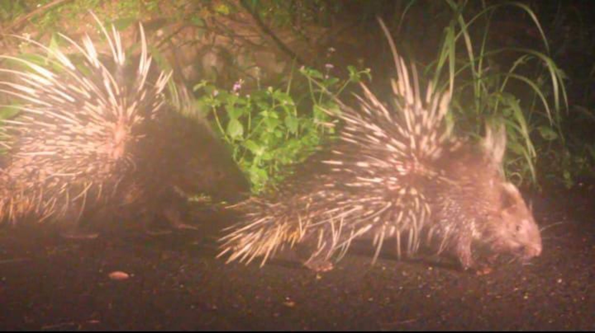Minha primeira vez observando porcos-espinhos asiáticos foi à noite no Parque Nacional de Khao Yai. Vi indivíduos solitários e famílias, com machos, fêmeas e filhotes. Foi incrível ver o comportamento defensivo, com os animais ouriçando ao perceber minha presença, e ao mesmo tempo forrageando à beira da rodovia.